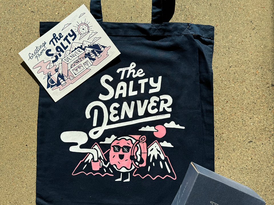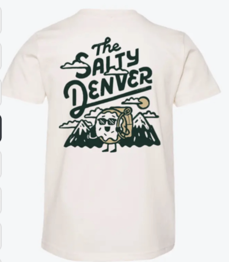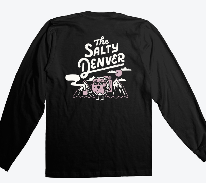 Get ready for adventure with The Salty Denver long sleeve, featuring our hiking donut mascot and the iconic Rocky Mountains. Perfect for repping The Salty in the Mile High City, whether you’re hitting the trails or the donut shop!